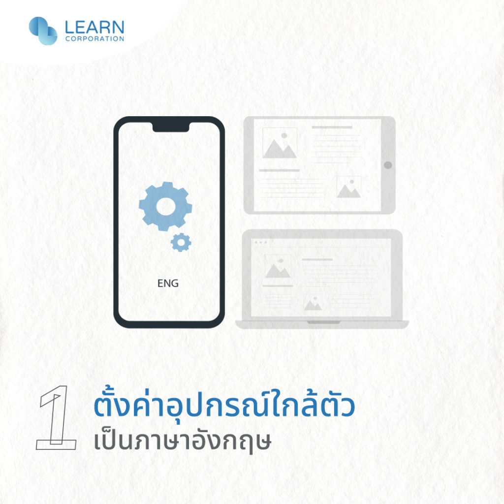 เริ่มต้นจากตั้งค่าเปลี่ยนภาษาอุปกรณ์ใกล้ตัว เช่น โทรศัพท์มือถือ คอมพิวเตอร์ อุปกรณ์อื่นๆ ตั้งค่าเมนูเป็นภาษาอังกฤษทั้งหมด และเพื่อความคุ้นชินมากขึ้น แนะนำให้เปลี่ยนภาษาใน Social media ที่เข้าบ่อยด้วย ทั้ง Facebook, Twitter และโซเชียลมีเดียต่างๆ ที่ใช้งานเป็นประจำ