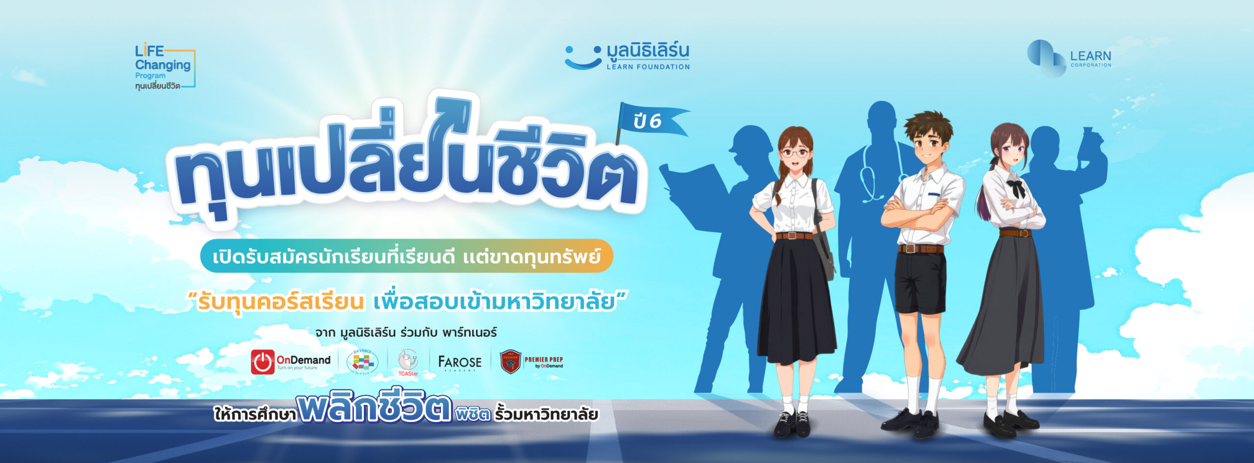 The Life-Changing Program scholarship, organized by the LEARN Foundation in collaboration with leading tutoring institutions, aims to support Thai high school students with strong academic performance and aspirations for higher education but who require financial assistance. The program offers 2,000 scholarships.