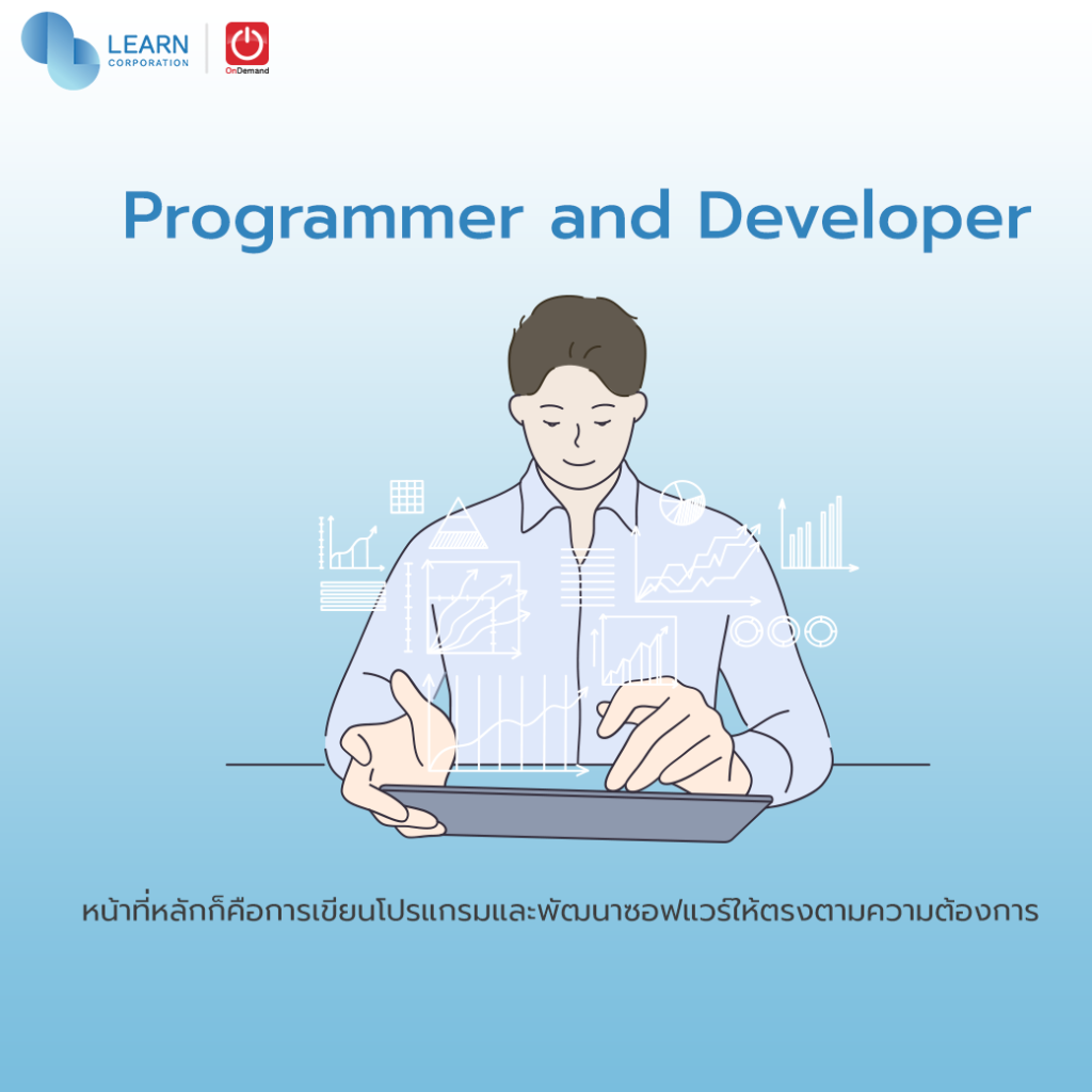 เป็นสายงานที่น่าจะพอคุ้นชื่อกันมาบ้าง ซึ่งหน้าที่หลักก็คือการเขียนโปรแกรมและพัฒนาซอฟแวร์ให้ตรงตามความต้องการ ทักษะภาษาคอมพิวเตอร์ที่ใช้ เช่น ภาษา C, C, Java, COBAL, IOS, Android ตัวอย่างตำแหน่งงานจะมีทั้ง Programmer, Android Developer, Mobile Developer, Software Developer เป็นต้น ส่วนรายได้จะเริ่มต้นที่ 18,000 – 130,000 บาท หากพัฒนาความรู้ เพิ่มทักษะใหม่ ๆ
