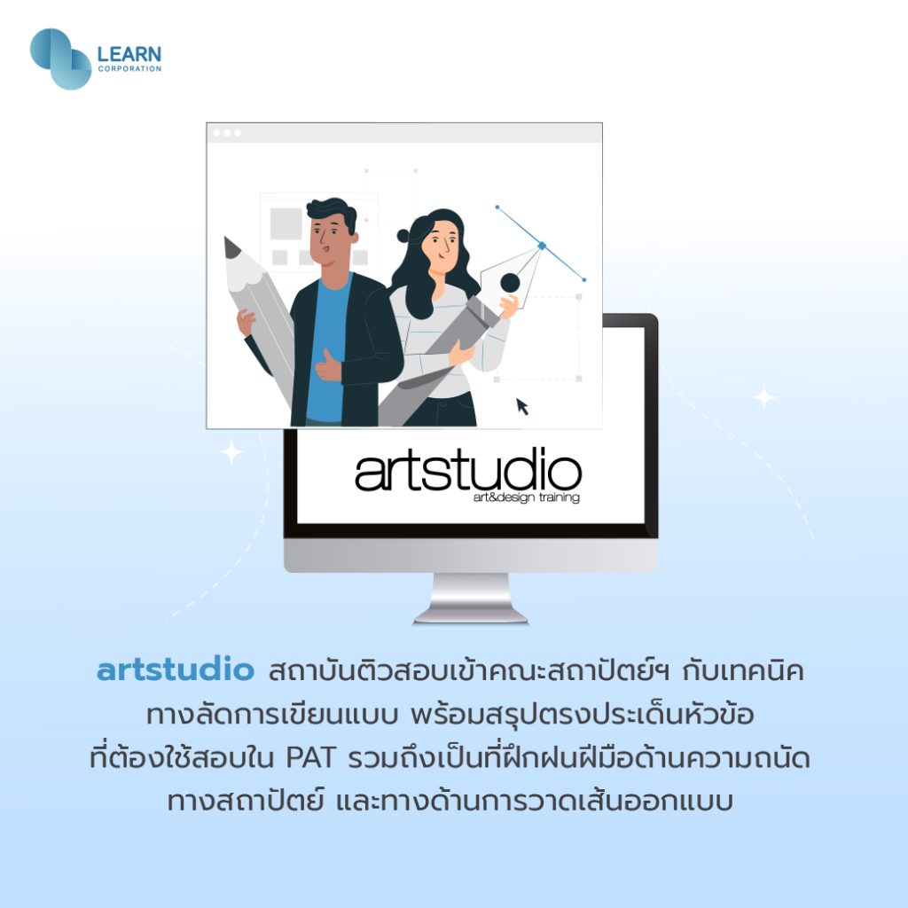 ถาบันติวสอบเข้าคณะสถาปัตย์ฯ กับเทคนิคการเขียนแบบ พร้อมสรุปตรงประเด็นหัวข้อที่ต้องใช้สอบใน PAT 4 โดยเน้นการแก้ปัญหาและทำข้อสอบได้ รวมถึงเป็นที่ฝึกฝนฝีมือด้านความถนัดทางสถาปัตย์ และทางด้านการวาดเส้นออกแบบ เพื่อให้น้อง ๆ เข้าศึกษาต่อในมหาวิทยาลัยทุกสาขา ทั้งในภาคไทยและนานาชาติ รวมไปถึงต่างประเทศ