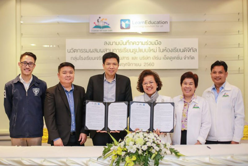 บริษัท เลิร์น เอ็ดดูเคชั่น จำกัด (LEARN EDUCATION) โดยคุณธานินทร์ ทิมทอง กรรมการผู้จัดการ บริษัท เลิร์น เอ็ดดูเคชั่น จำกัด ต้อนรับกลุ่มโรงเรียนเครือข่ายเจริญร้อยแก่นสาร สู่ครอบครัว Learn Education พร้อมกับร่วมลงนามบันทึกข้อตกลงความร่วมมือ “นวัตกรรมแบบผสมผสานการเรียนรูปแบบใหม่ ในห้องเรียนดิจิทัล” โดยมี คุณสุววรณนา รอดราคี ประธานเครือข่ายเจริญร้อยแก่นสาร และผู้อำนวยการโรงเรียนในเครือฯ จำนวน 13 โรงเรียน เป็นตัวแทนร่วมกิจกรรม ณ โรงแรมรอยัลซิตี้ ปิ่นเกล้า กรุงเทพมหานคร โดยทั้ง 2 ฝ่าย จะร่วมกันพัฒนาและส่งเสริมนักเรียนของโรงเรียนด้านวิชาวิทยาศาสตร์ และคณิตศาสตร์ เพื่อเพิ่มผลสัมฤทธิ์ทางการเรียนที่ดีขึ้น  พร้อมทั้งช่วยยกระดับการศึกษาไทย และเปิดโอกาสทางการเรียนรู้ให้กับนักเรียนมากยิ่งขึ้น